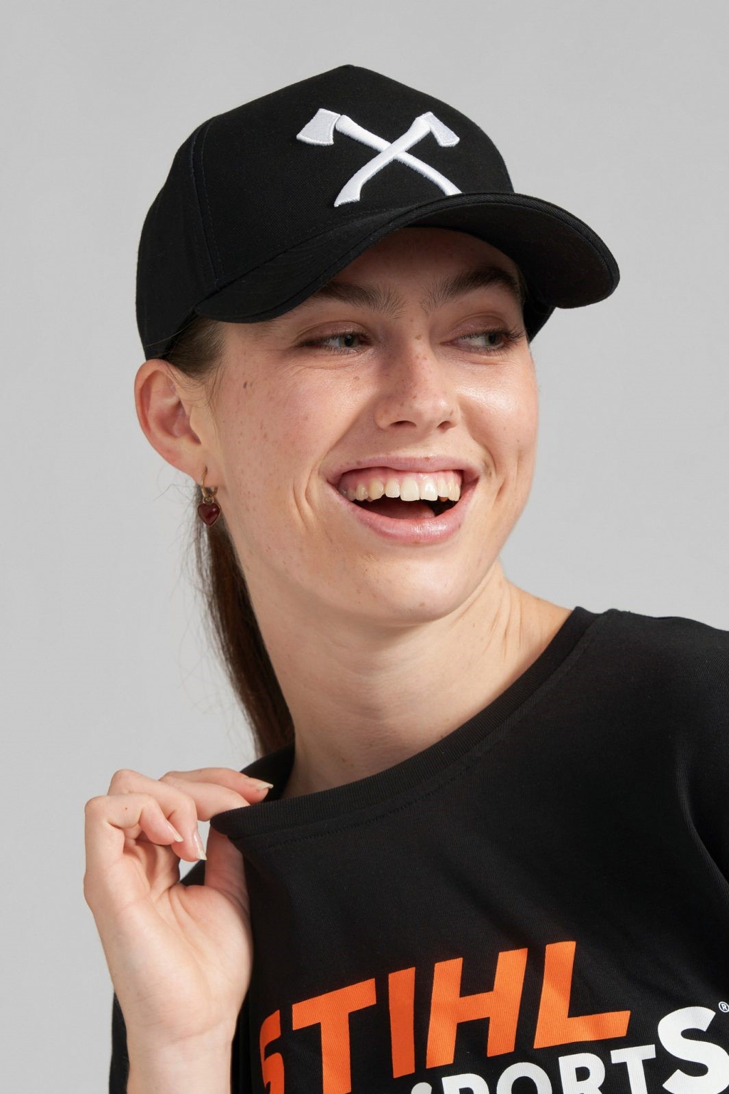Klasyczna czapka baseballowa w kolorze czarnym to idealny wybór dla każdego fana TIMBERSPORTS®. Z przodu znajdują się charakterystyczne, skrzyżowane siekiery wyhaftowane na biało, natomiast z tyłu umieszczono etykietę z flagą TIMBERSPORTS®.