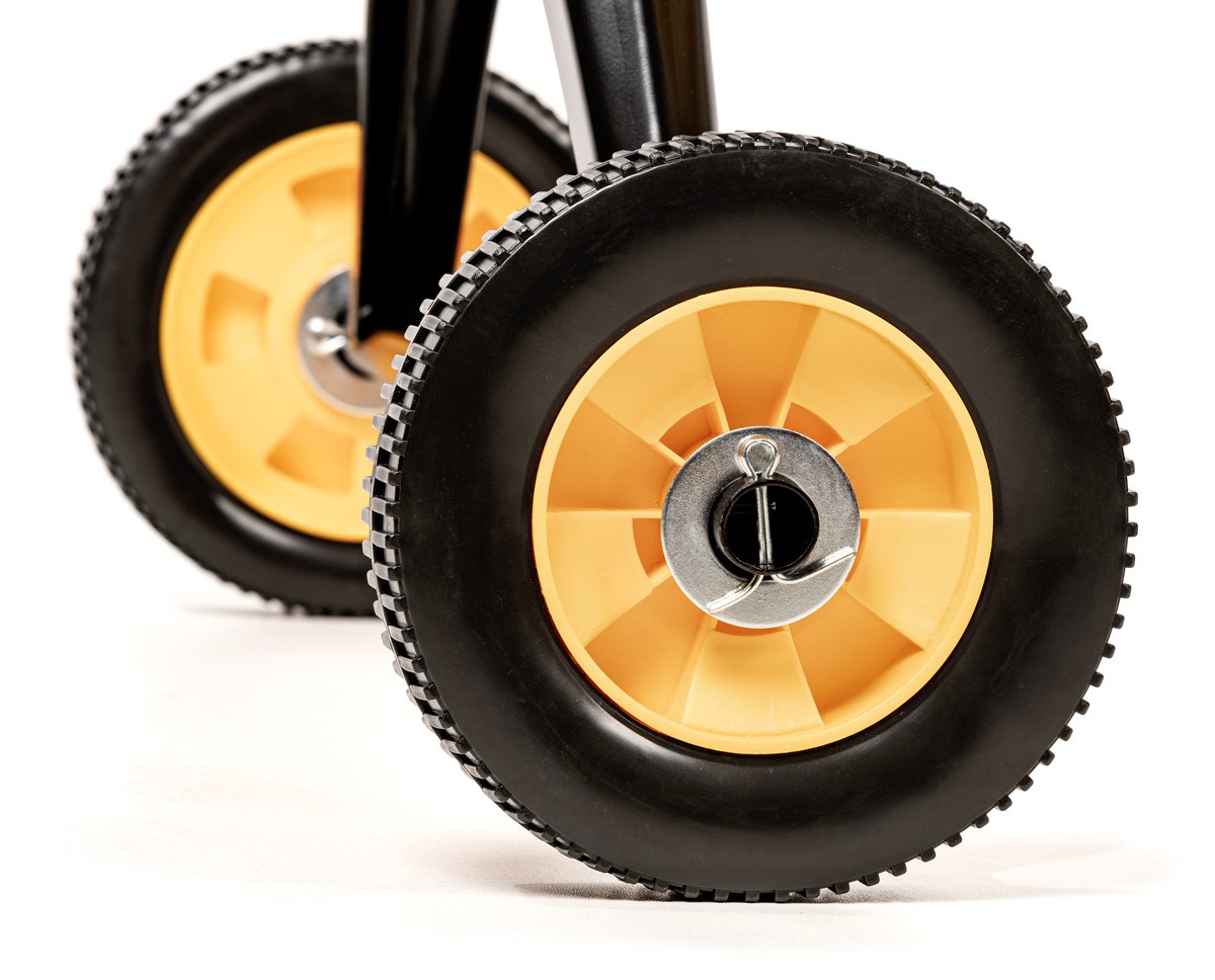 - Łatwa mobilność: Szeroki rozstaw kół na stalowej ramie zapewnia stabilność podczas pracy i lekkość podczas transportu.