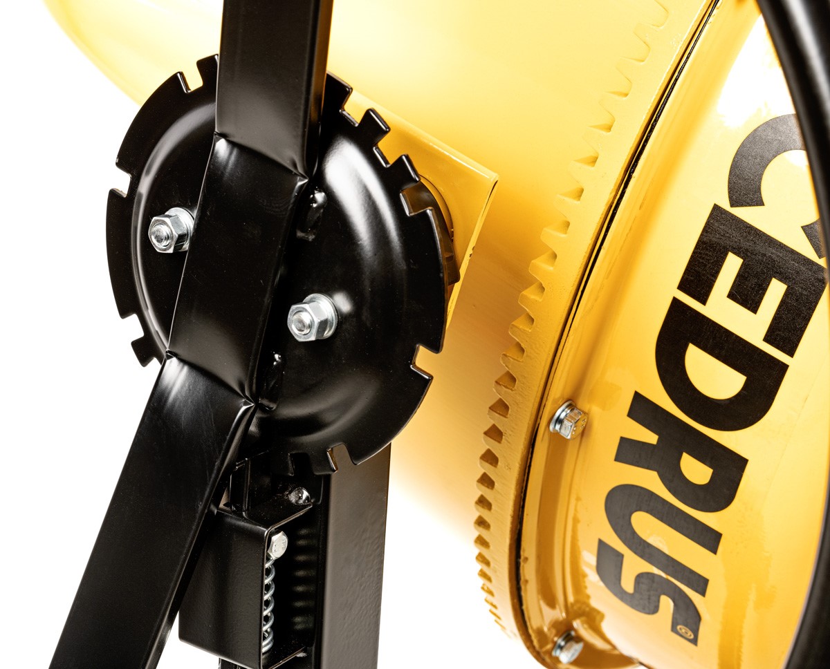 - Precyzyjny przechył: Koło z tarczą regulacyjną pozwala na dokładne ustawienie kąta nachylenia bębna i stabilną blokadę pozycji.
