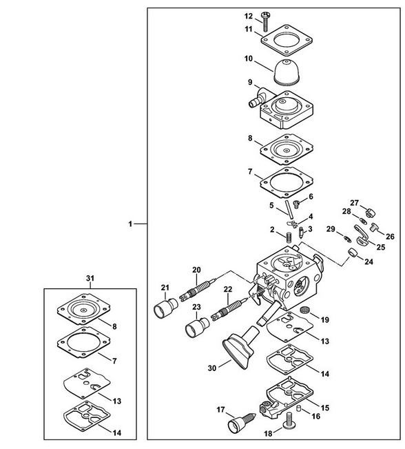 | 31 | 42410071700 | Zestaw podzespołów gaźnika | Duża ilość | 55,00 zł |