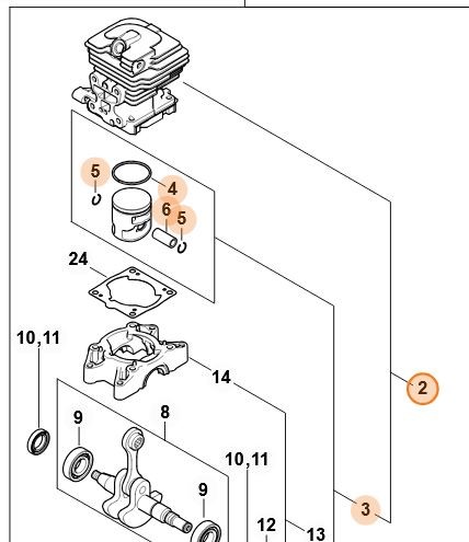 Cylinder z tłokiem Ø 37 mm Stihl do pilarek MS 162 / MS 162 C – OEM 1148 020 1201