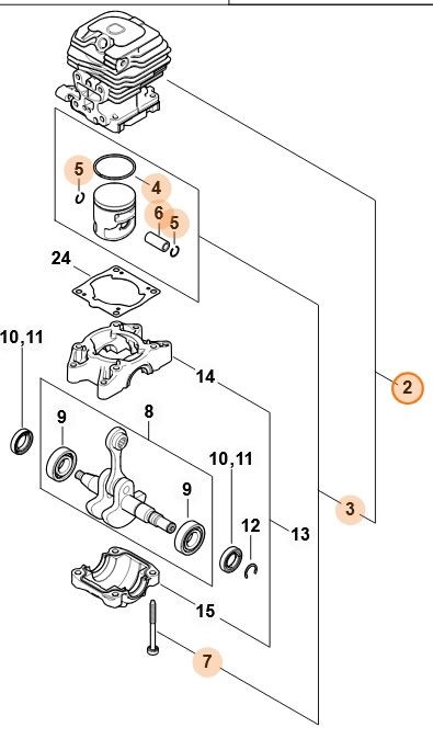 Cylinder z tłokiem Stihl Ø 39 mm do pilarek MS 182 / MS 182 C – 1148 020 1205