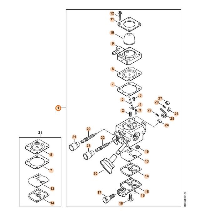 Gaźnik Stihl 4241/19 do dmuchawy BR200 / BR200-D – OEM 4241 120 0619