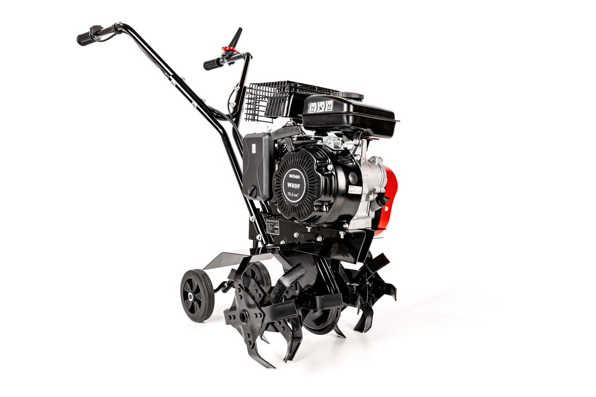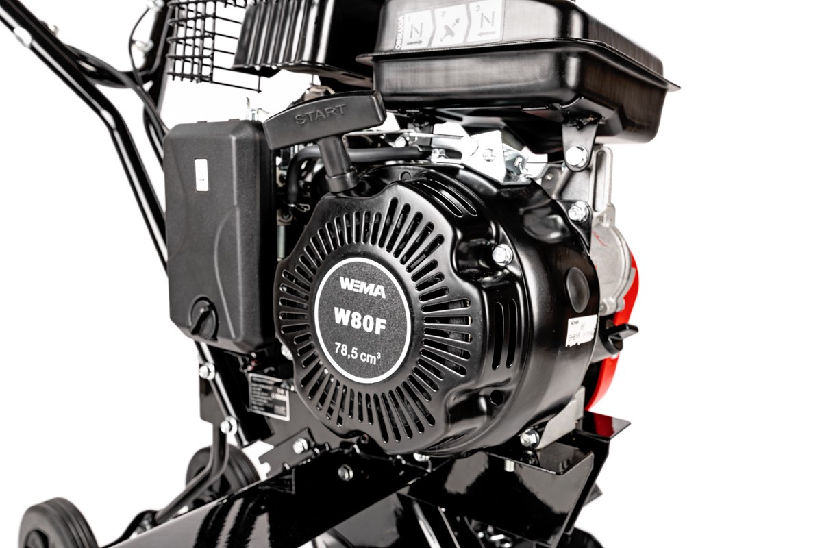 Sercem urządzenia jest sprawdzona jednostka napędowa Weima W80F o mocy maksymalnej 2,3 KM. Silnik ten charakteryzuje się wysoką kulturą pracy oraz niskim zużyciem paliwa. Za przeniesienie napędu odpowiada solidny układ składający się z paska i koła pasowego, natomiast sam układ roboczy napędzany jest wytrzymałym łańcuchem. 24 hartowane noże obracające się z prędkością 134 obr./min skutecznie kruszą strukturę gleby na głębokość 10 cm, przygotowując podłoże pod wysiew warzyw lub kwiatów.