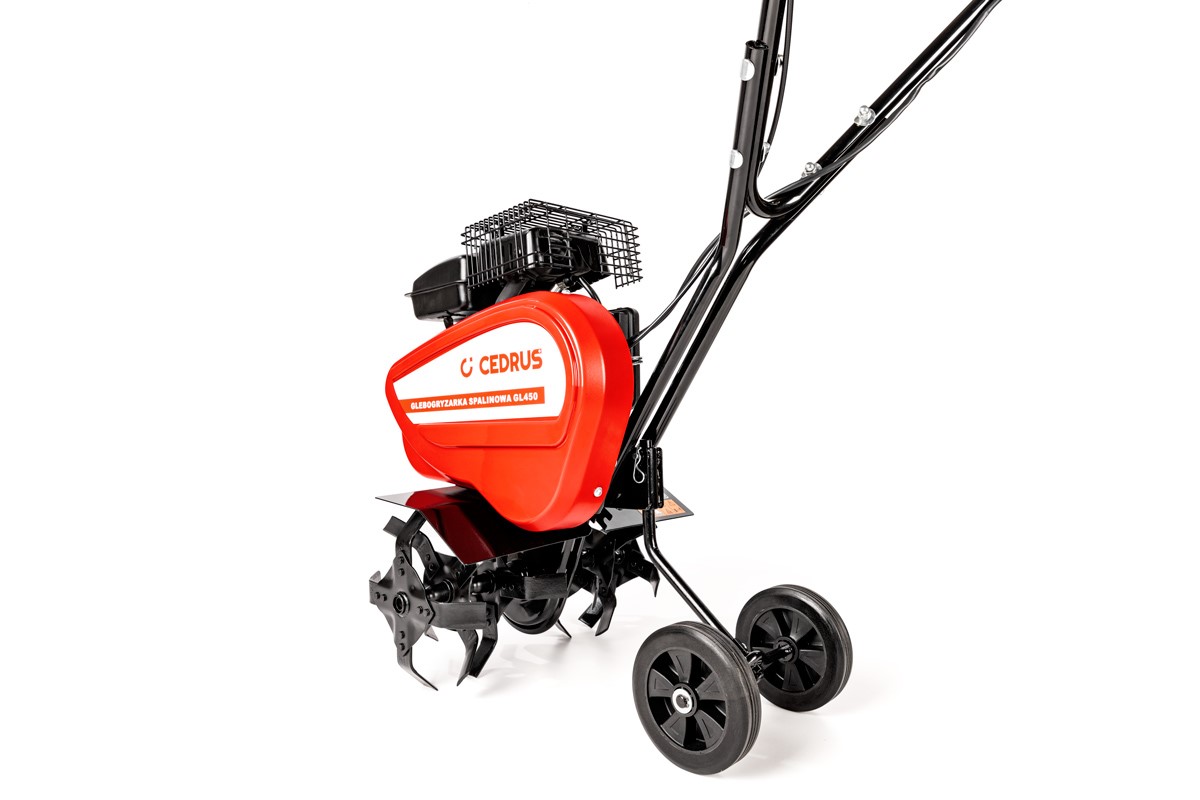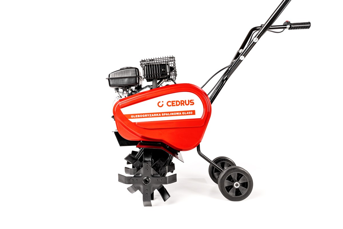 Glebogryzarka spalinowa Cedrus GL08 (znana również jako GL450) to jedna z najbardziej kompaktowych maszyn w ofercie, zaprojektowana z myślą o precyzyjnej pracy w przydomowych warzywnikach oraz ogrodach o powierzchni do 600 m². Dzięki niewielkiej szerokości roboczej wynoszącej 42 cm, urządzenie to staje się niezastąpionym pomocnikiem w wąskich międzyrzędziach i trudno dostępnych miejscach, gdzie większe maszyny nie są w stanie swobodnie manewrować.