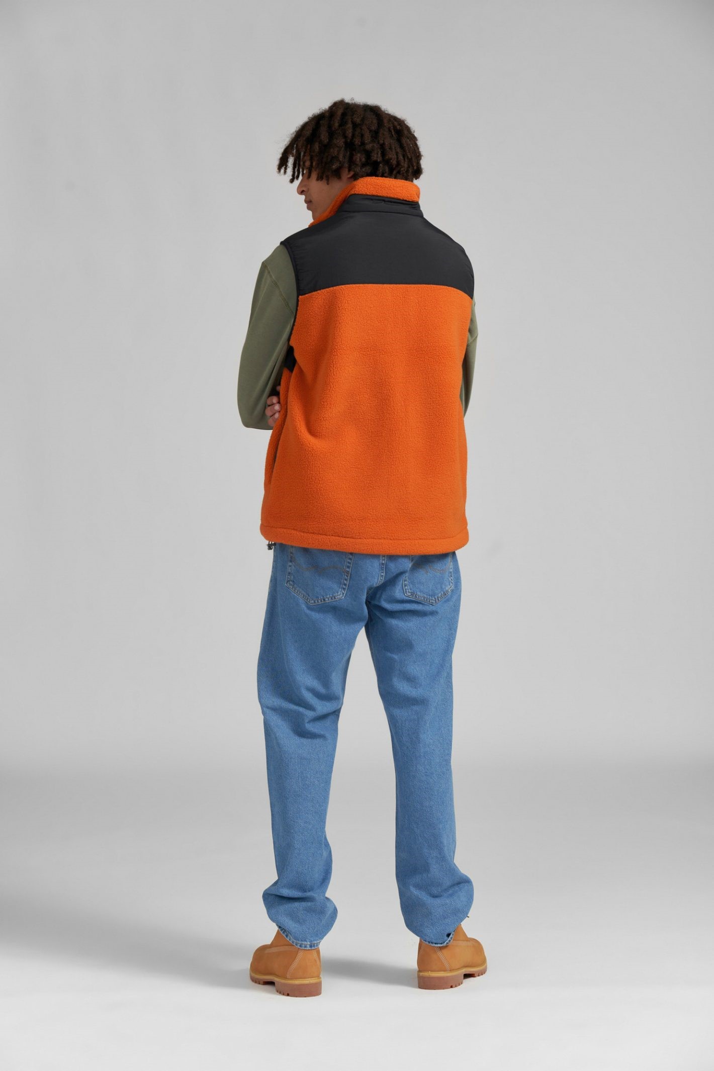 Kamizelka SHERPA ORANGE o regularnym kroju została wykonana z wyjątkowo ciepłego polaru sherpa. Kontrastujące czarne naszywki nadają jej nowoczesny i stylowy charakter.