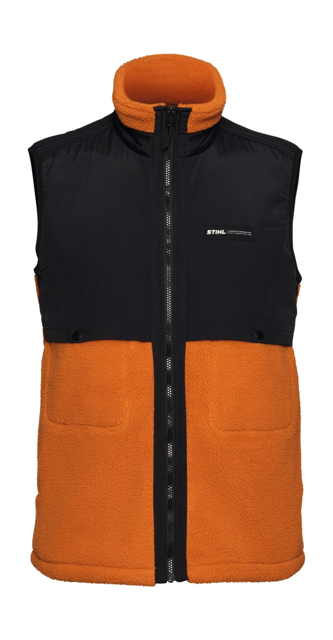 Model posiada boczne kieszenie zapinane na suwak oraz kieszenie naszywane z przodu, które zapewniają dużo miejsca na przechowywanie rzeczy osobistych. Regulowany wewnętrzny pas u dołu umożliwia indywidualne dopasowanie, a całość dopełnia metka STIHL „LEGENDARY PERFORMANCE” umieszczona na piersi.