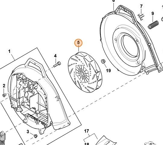 - Typ: koło łopatkowe (wentylatora) dmuchawy plecakowej