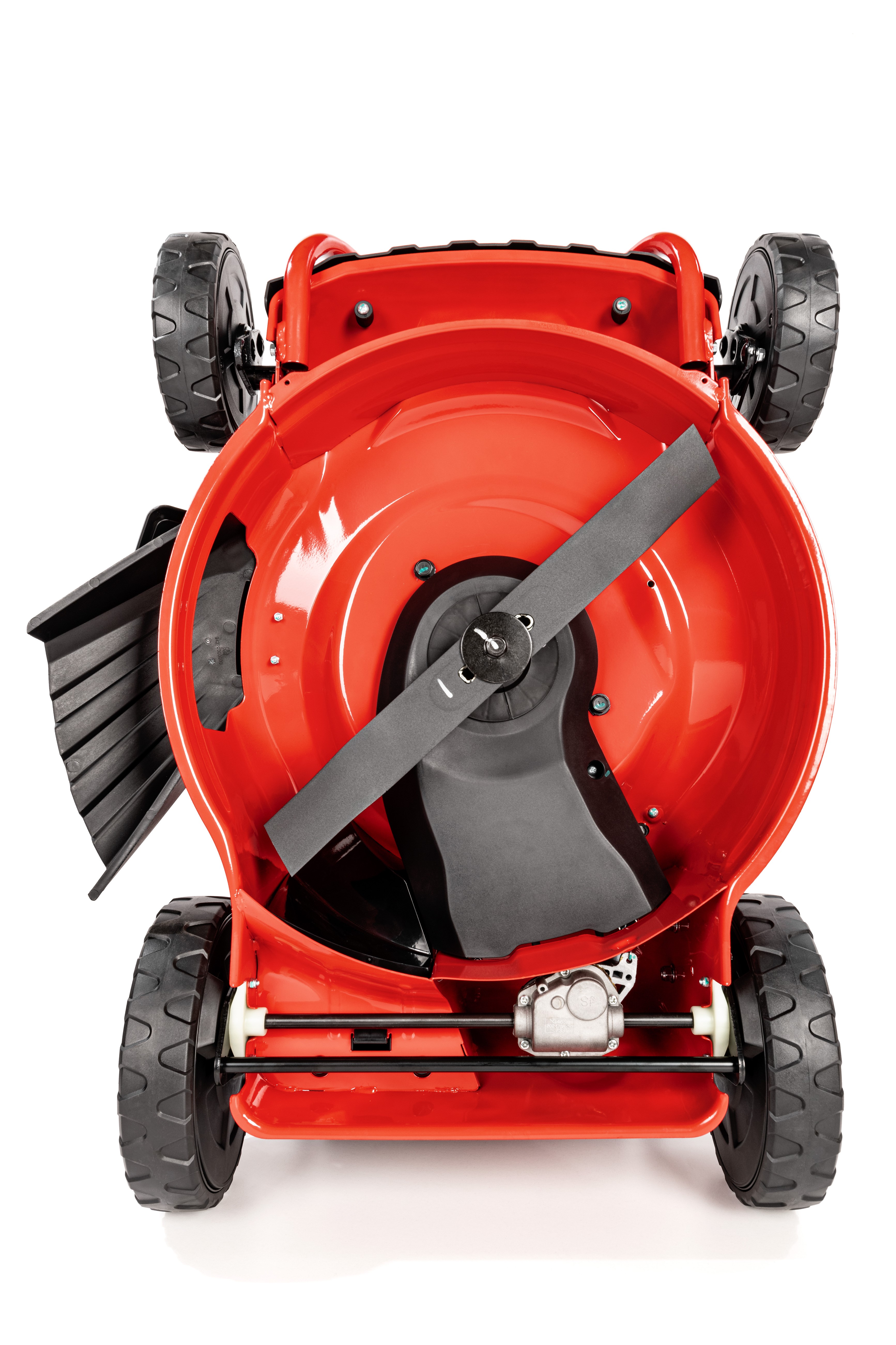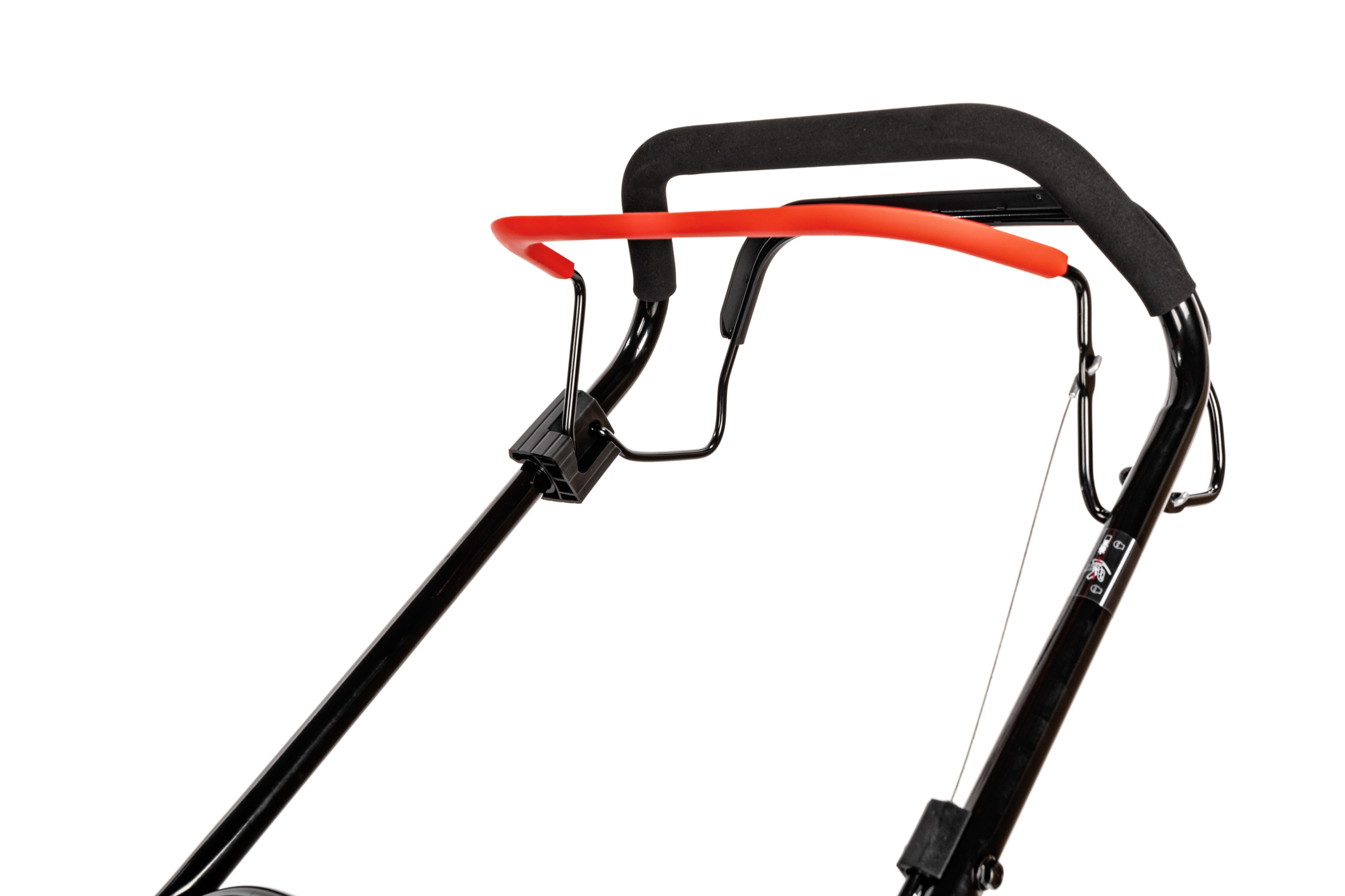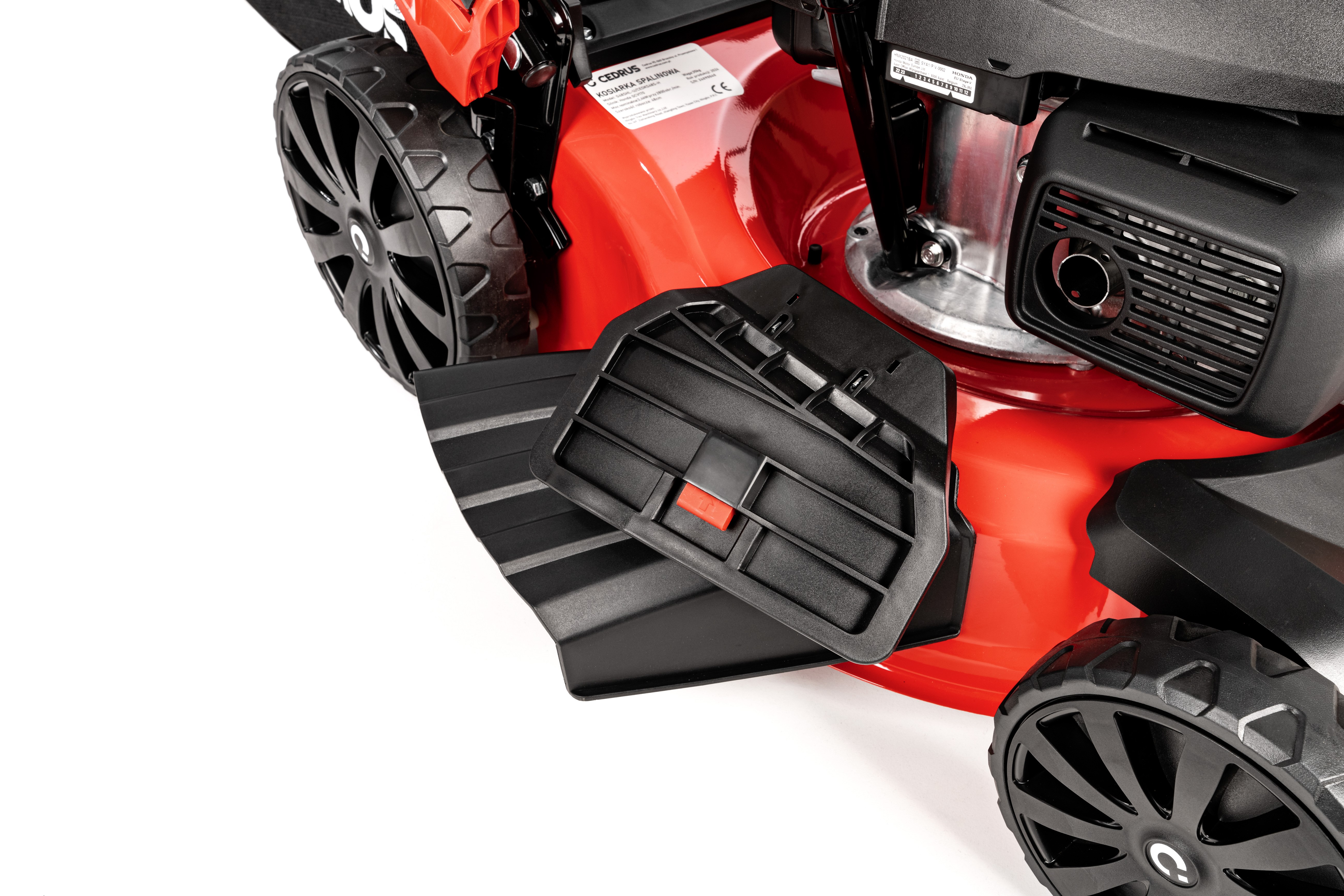 - Komfort: Przedni uchwyt ułatwiający czyszczenie i transport kosiarki.