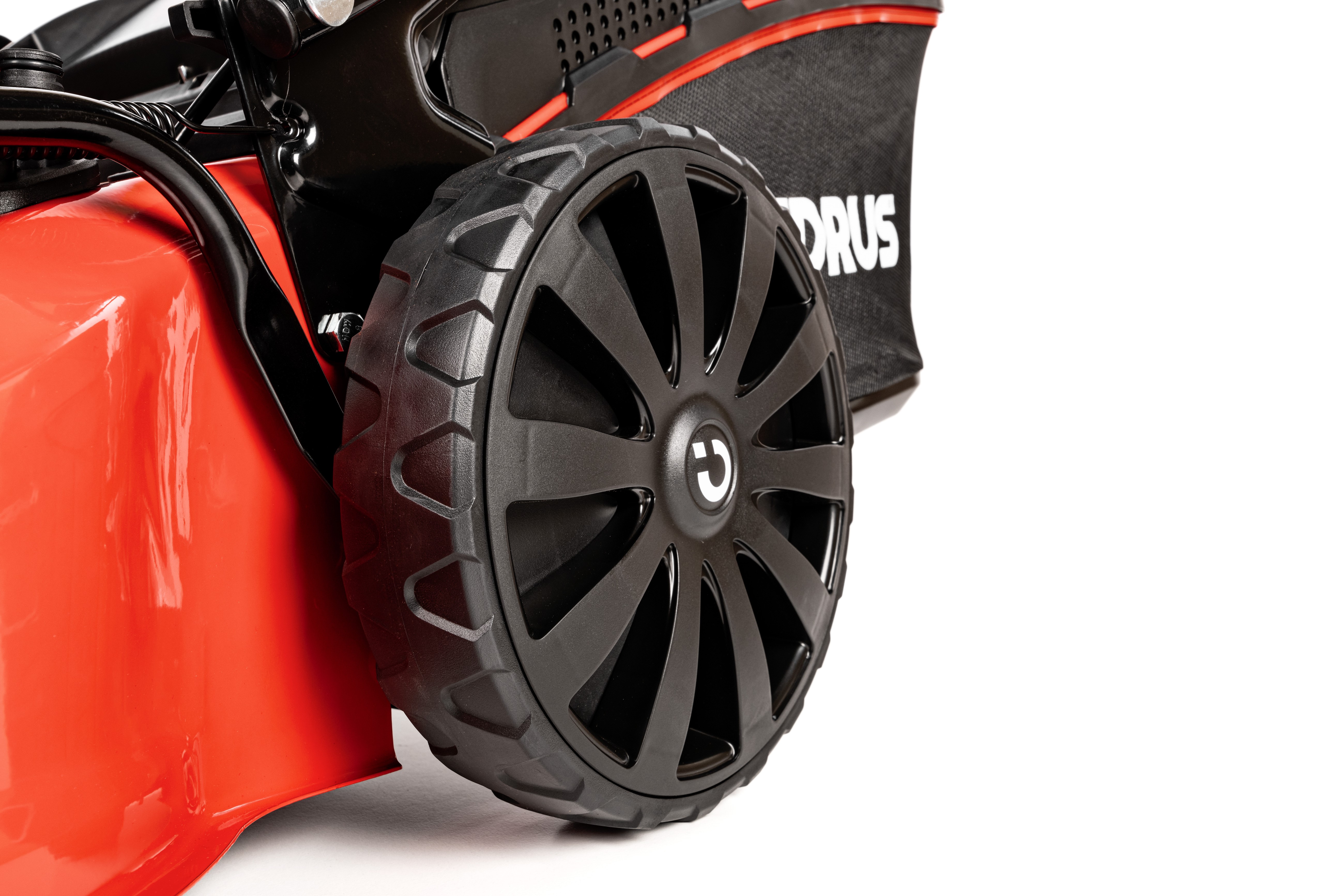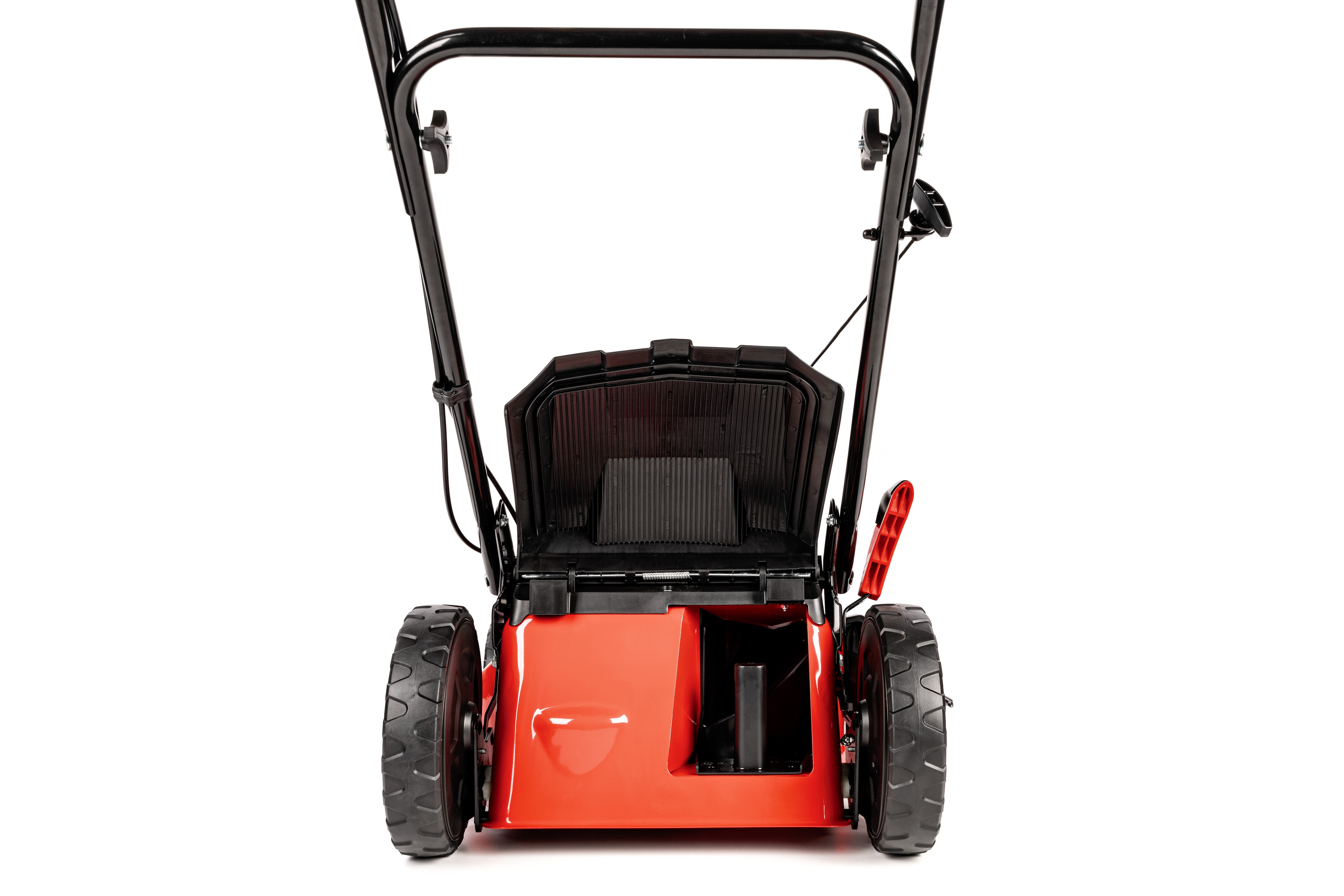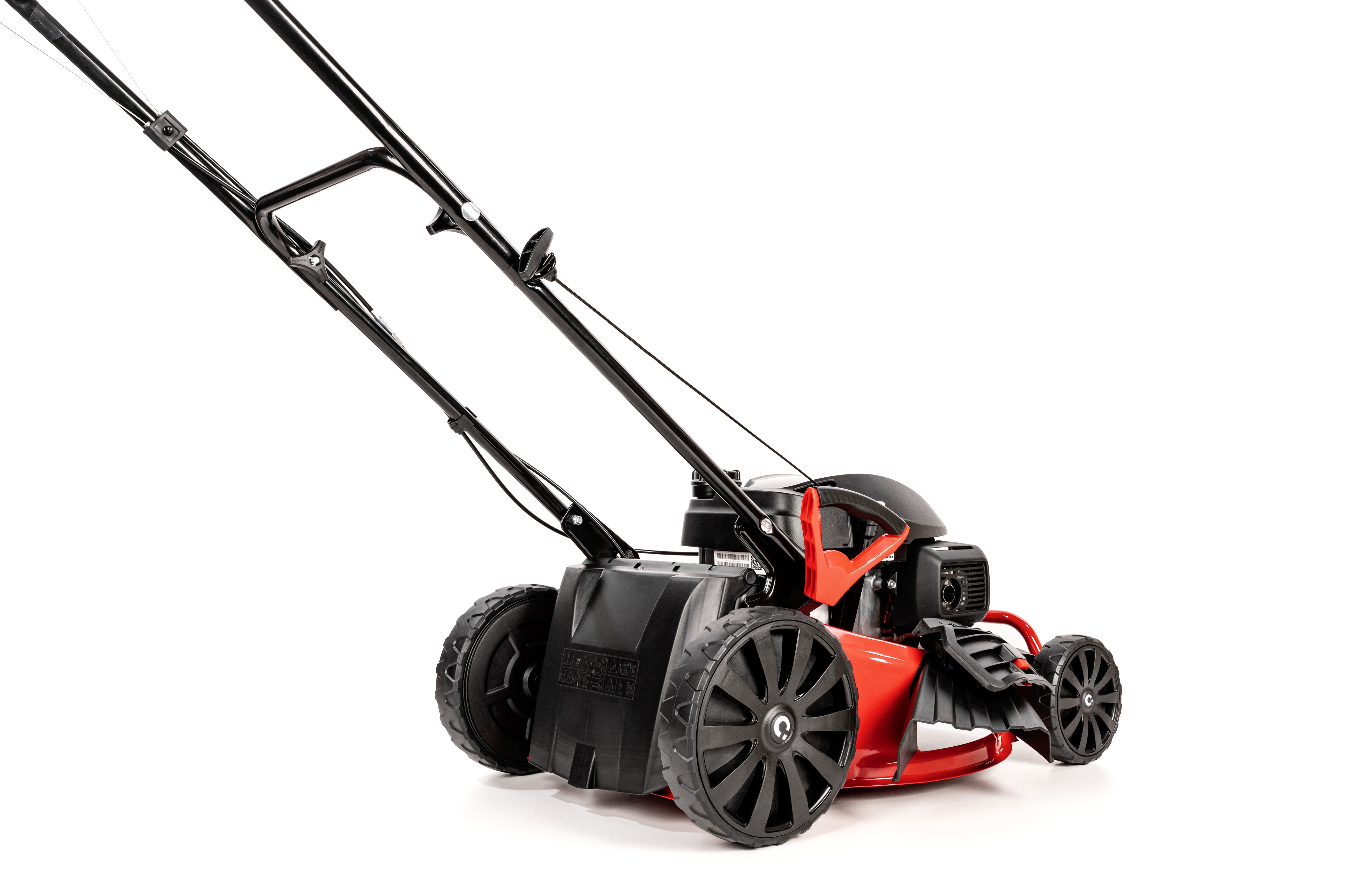 - Komfort: Przedni uchwyt ułatwiający czyszczenie i transport kosiarki.