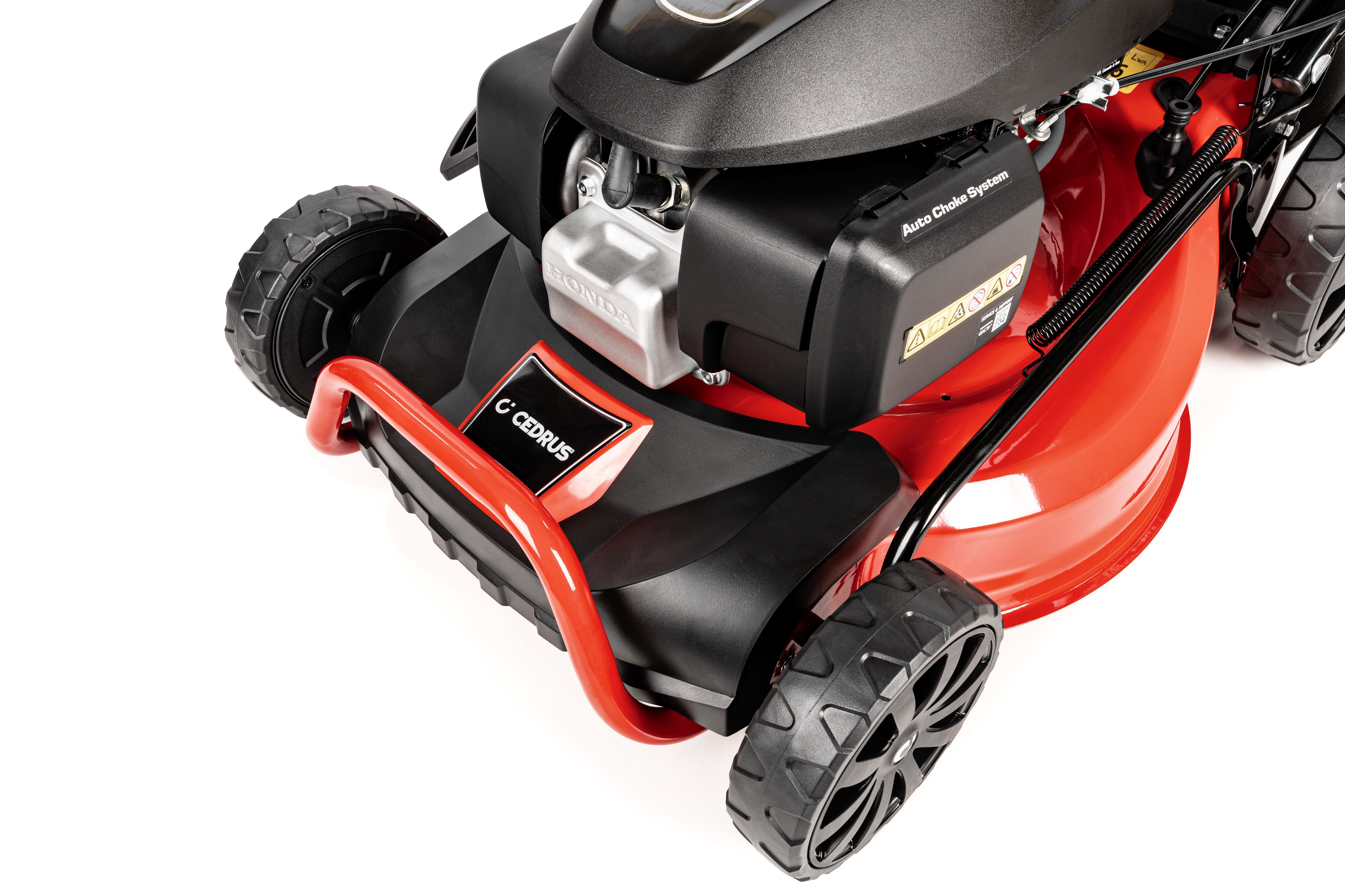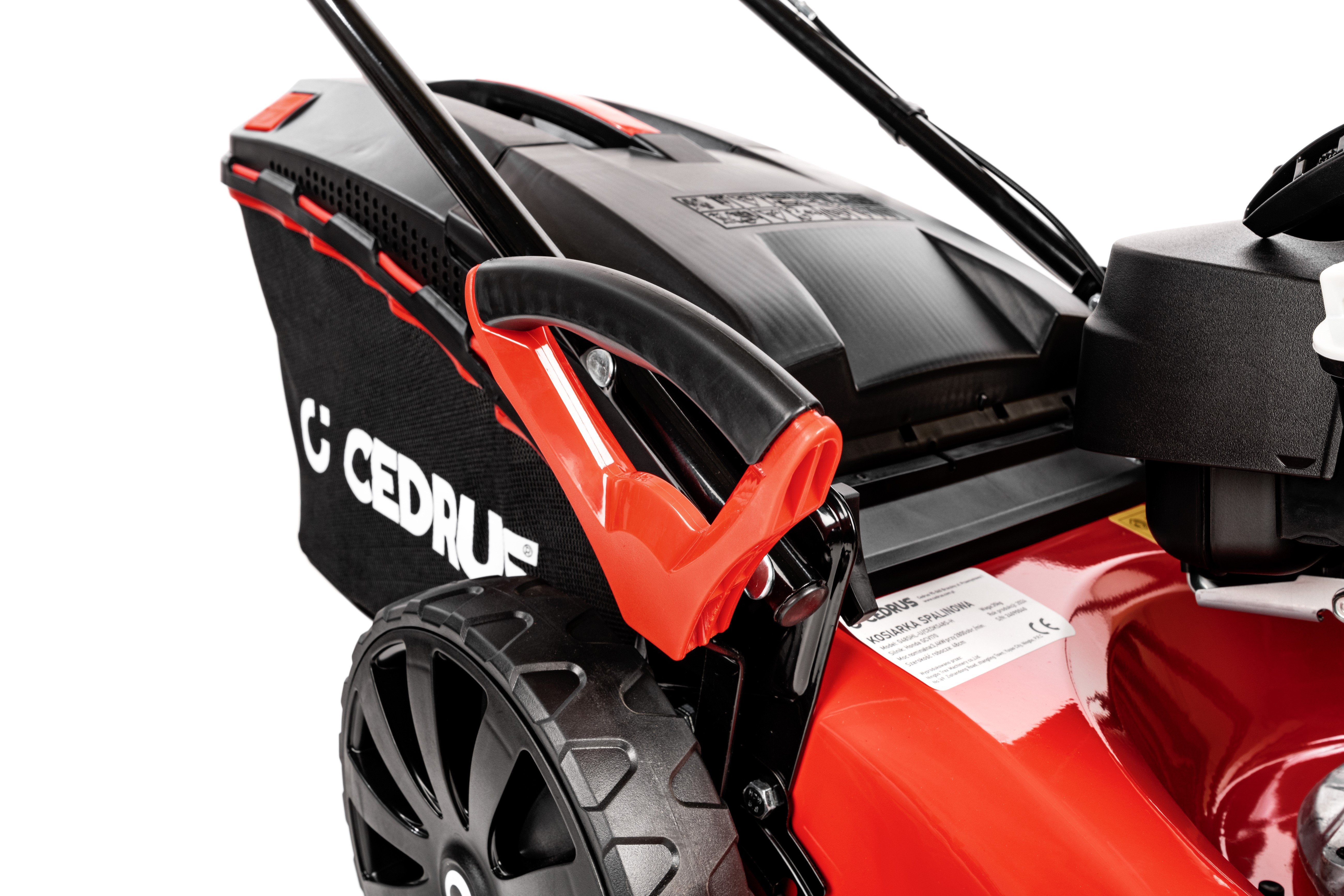 Kosiarka spalinowa Cedrus KS48S-H to model klasy premium wyposażony w niezawodny napęd oraz legendarny, mocny silnik Honda GCV170 o mocy 3,4 kW przy 2800 obr/min i pojemności 170 cm³. Wszystkie elementy kosiarki zostały starannie dobrane, aby zapewnić użytkownikowi najwyższą niezawodność i komfort pracy na trawnikach o powierzchni do 1500 m².