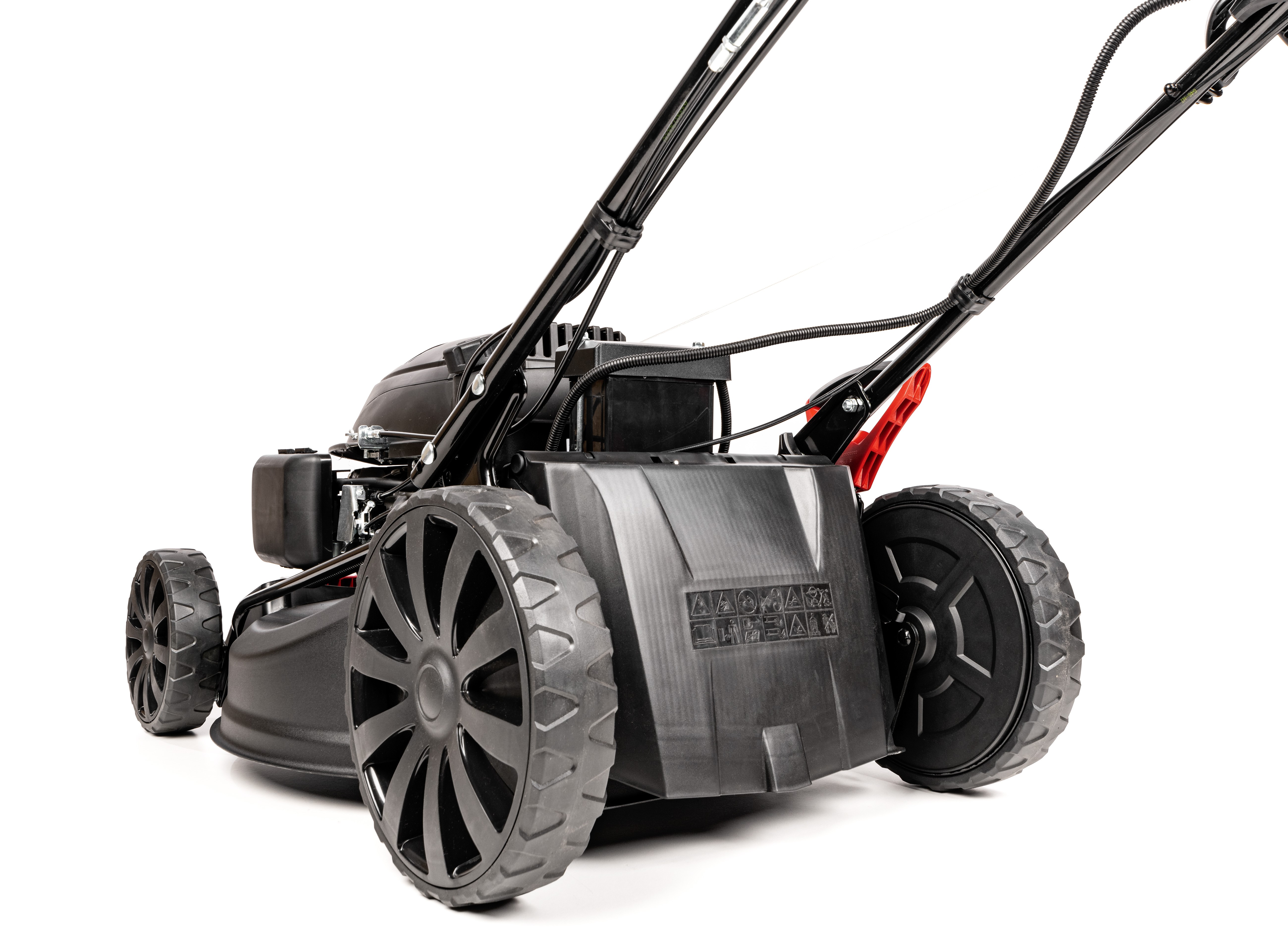 - System koszenia 4w1: Pełna wszechstronność (kosz, mulczowanie, wyrzut boczny/tylny) w standardzie.