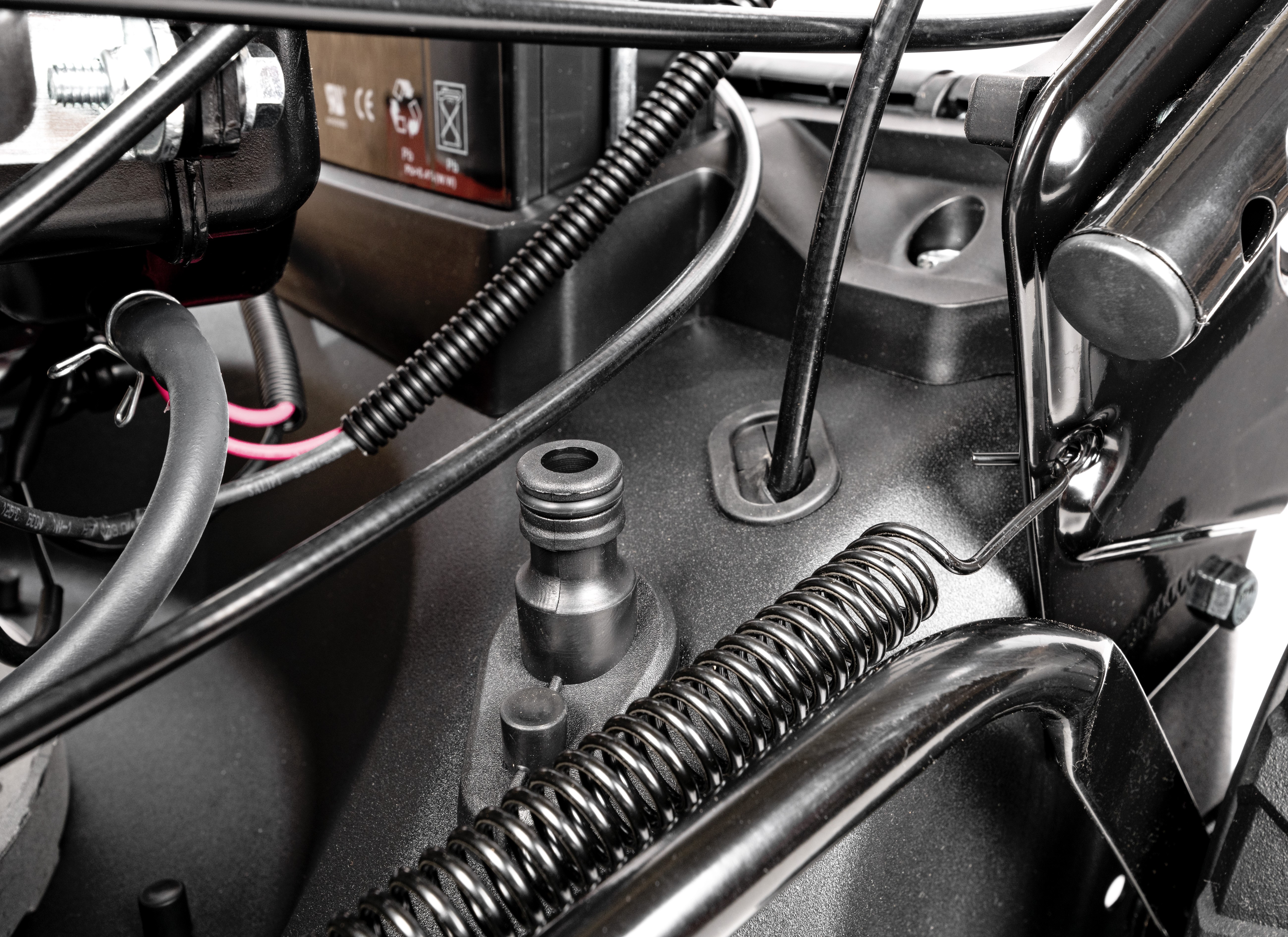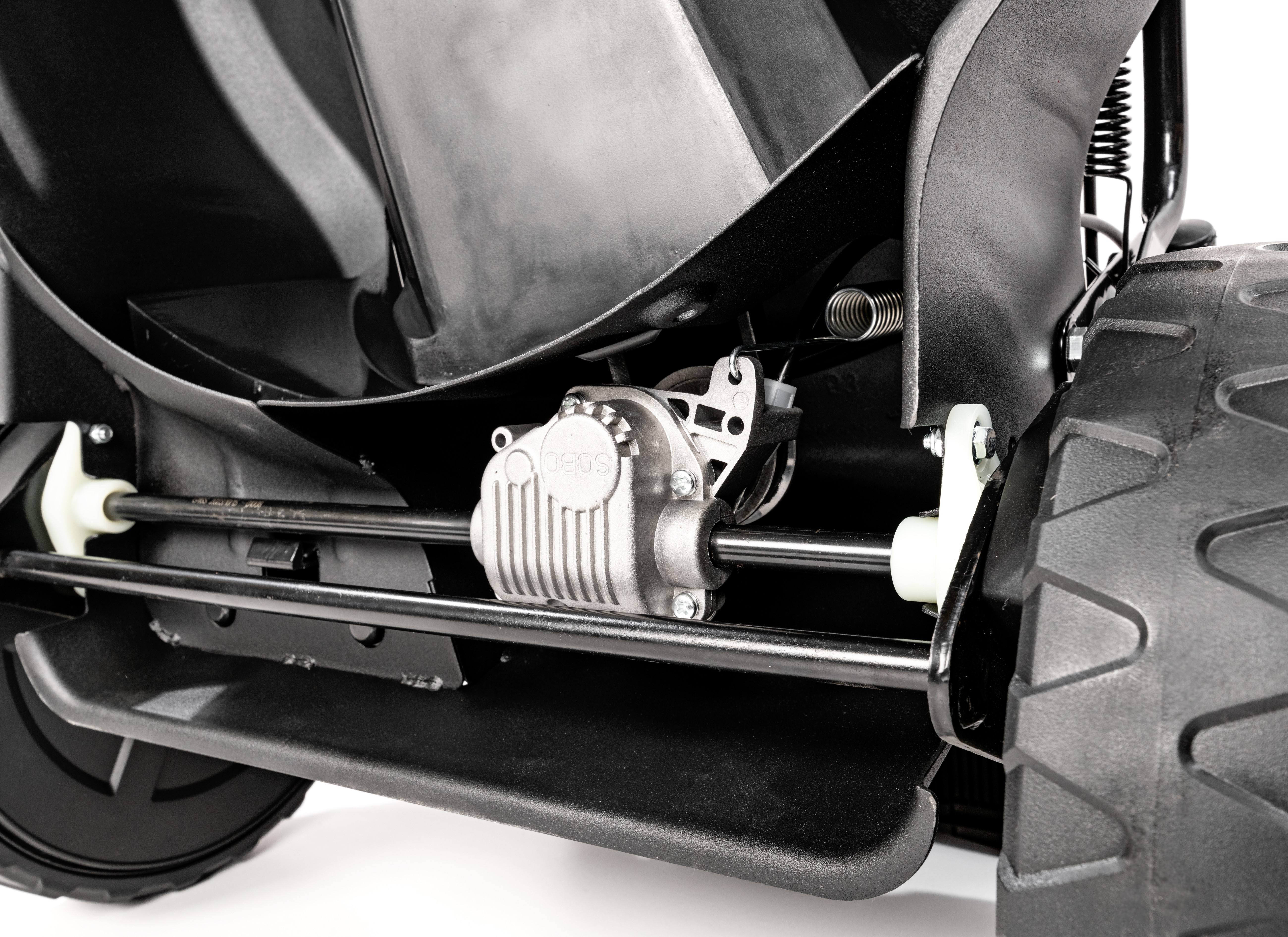 - Łatwość obsługi: Centralna regulacja wysokości i złącze do mycia podwozia kosiarki.