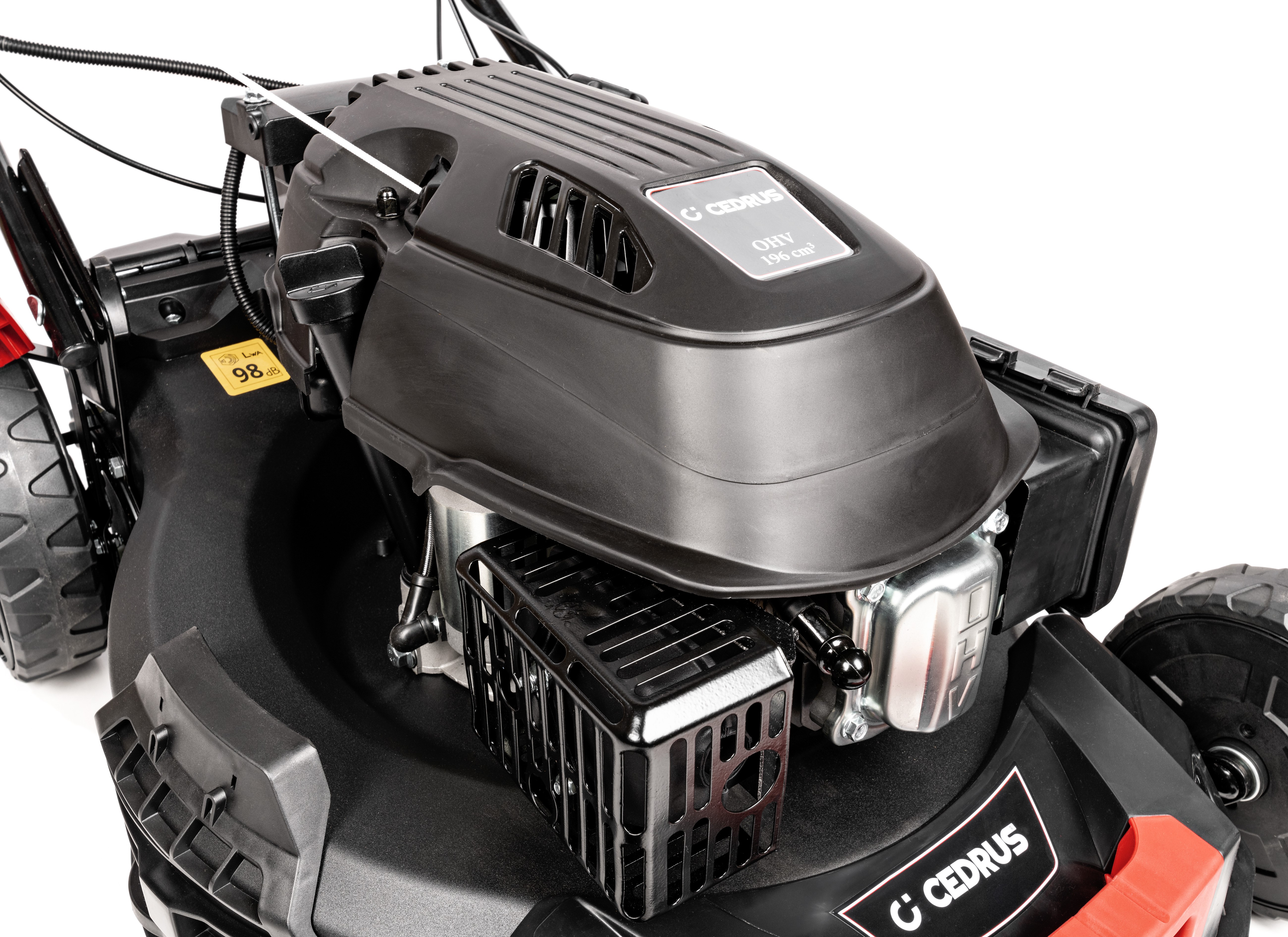 Kosiarka spalinowa Cedrus KS53S-E to flagowy model, który łączy wydajność z maksymalnym komfortem obsługi, dedykowany do dużych trawników. Wyposażona została w mocny silnik Cedrus Y196V OHV o pojemności 196 cm³ i mocy 4,2 kW (5,7 KM), z innowacyjnym elektrycznym rozruchem (e-start), co eliminuje konieczność szarpania linki.