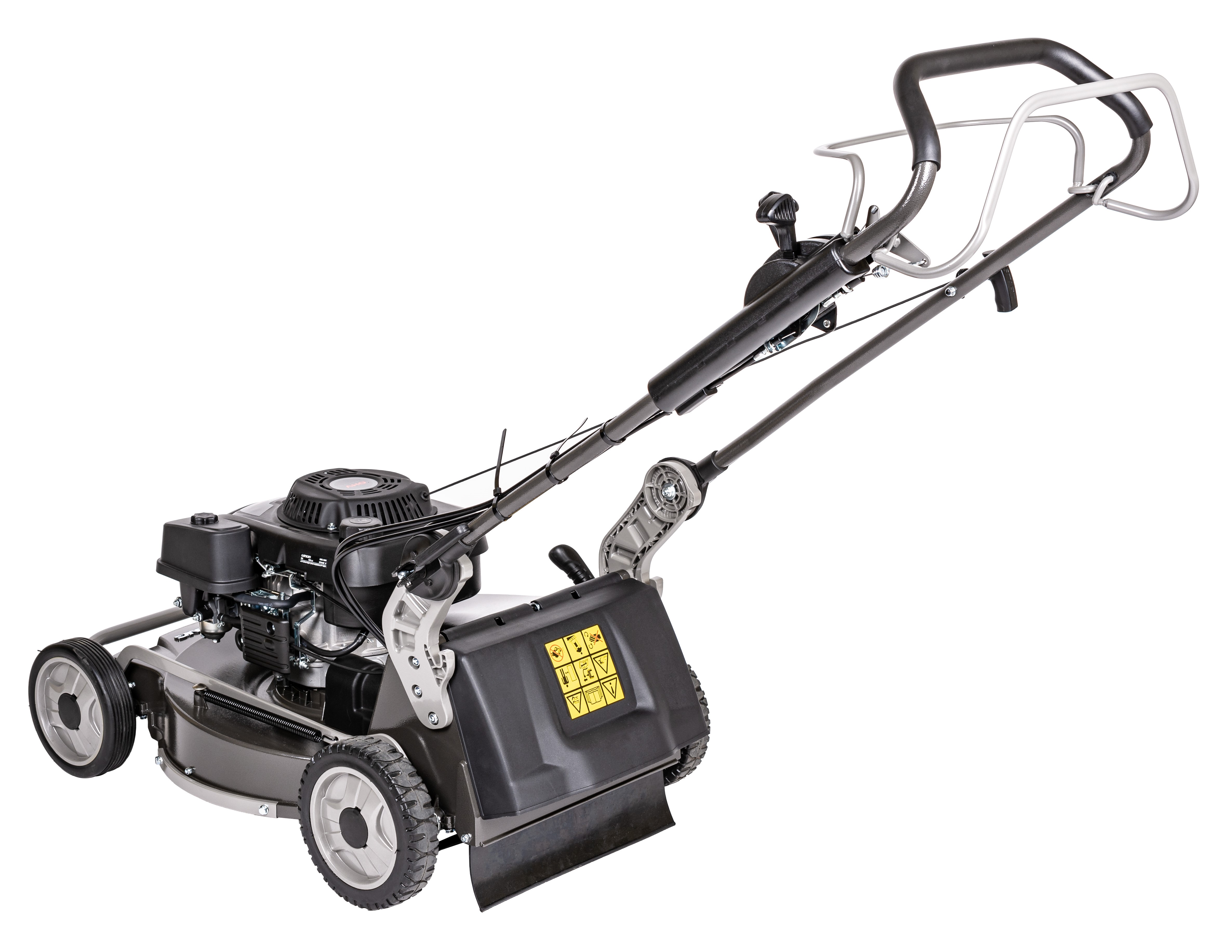 Model ten charakteryzuje się wytrzymałą, aluminiową obudową, która jest lekka, odporna na korozję i malowana proszkowo farbą typu HAMMERITE. Profilowany nóż w połączeniu z konstrukcją podwozia idealnie zbiera skoszoną trawę do pojemnego, 70-litrowego kosza. Kosiarka oferuje system koszenia 3w1: zbieranie do kosza, wyrzut tylny oraz mulczowanie (mielenie), co zapewnia wszechstronność zastosowania. Dodatkowo, system szybkiego składania dwustopniowo regulowanego uchwytu znacznie ułatwia transport i przechowywanie.