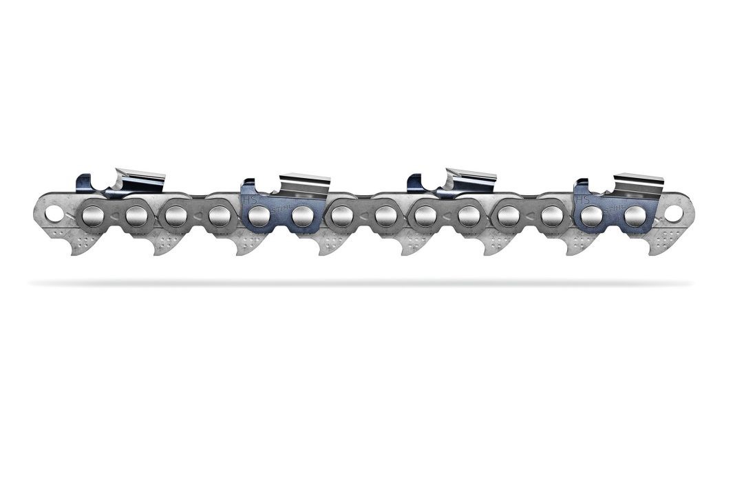 Łańcuch Stihl Rapid Micro Harvester Special (RMHS) to specjalistyczny osprzęt tnący, stworzony z myślą o najcięższych warunkach panujących podczas zmechanizowanego pozyskiwania drewna. W przeciwieństwie do standardowych łańcuchów, seria RMHS charakteryzuje się asymetryczną formą bieżni ślizgowych oraz wzmocnionymi podzespołami, co drastycznie redukuje naprężenia materiałowe. Dzięki zastosowaniu zaokrąglonych ograniczników zagłębienia, łańcuch wykazuje minimalną tendencję do pęknięć zmęczeniowych, co przekłada się na znacznie dłuższą żywotność przy pracy z dużymi prędkościami i siłami posuwu głowic harwesterowych. Każdy ząb tnący posiada unikalne oznaczenie "HS", potwierdzające najwyższą odporność eksploatacyjną.