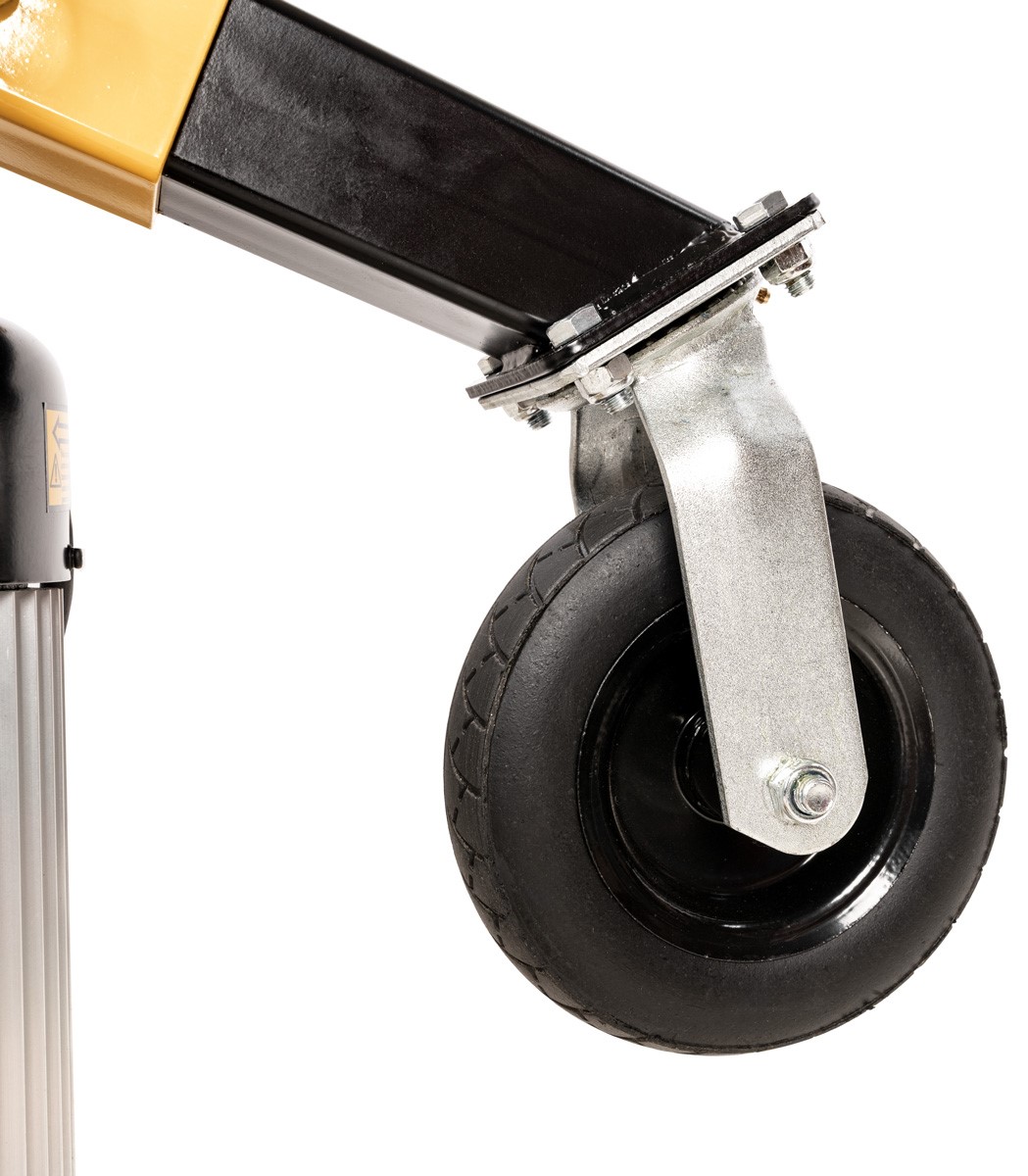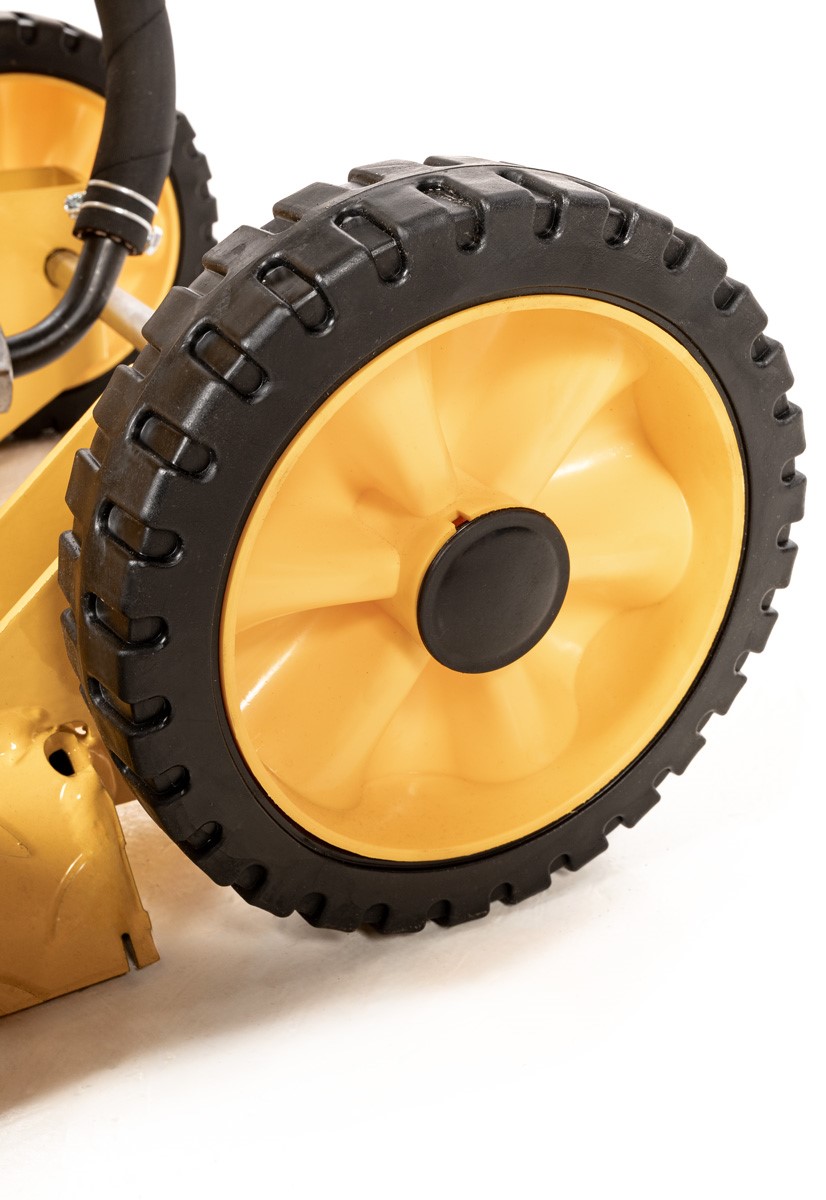 - Mobilność w każdych warunkach: Pompowane koła transportowe ułatwiają przemieszczanie maszyny po nierównym terenie oraz załadunek na przyczepy.