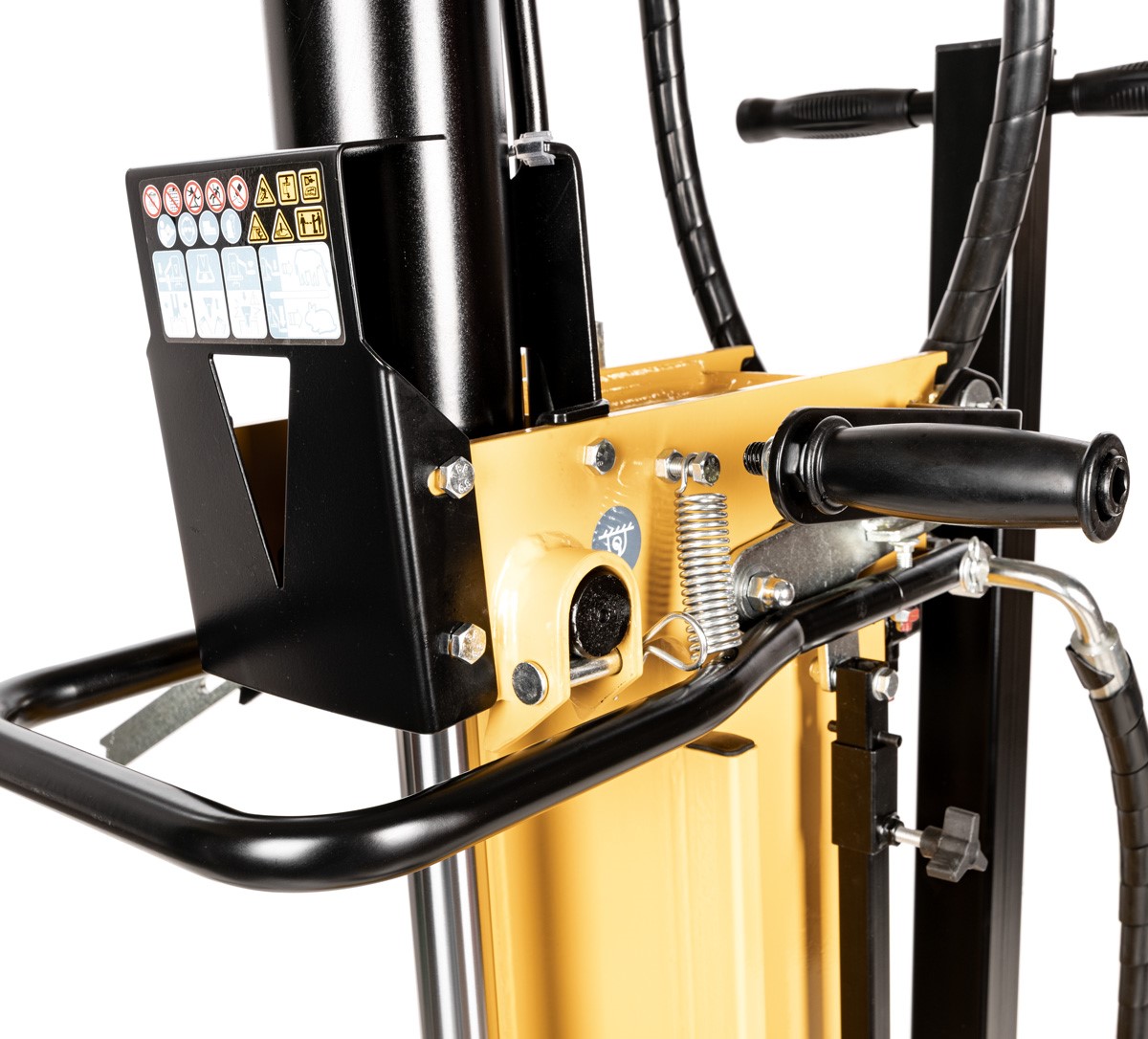 - Bezpieczna obsługa: System dwuręcznego sterowania za pomocą dźwigni minimalizuje ryzyko wypadku, zapewniając pełną kontrolę nad procesem łupania.