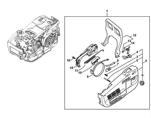 MS 201 C-M - Pokrywa koła napędu łańcucha, Osłona dłoni