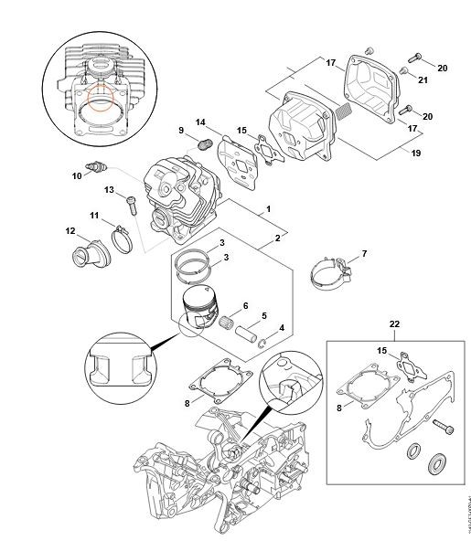 MS 462 C-M - C - Cylinder, tłumik wydechu spalin