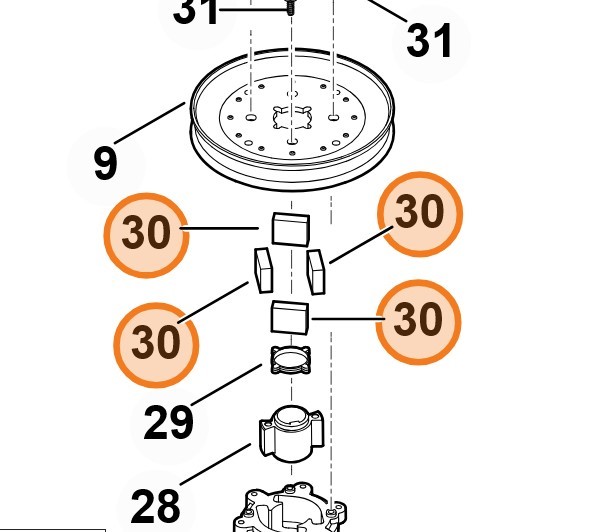 Bufor ten (znany także jako odbojnik, tłumik drgań lub damper) jest stosowany w układach jezdnych lub mocowaniach agregatów tnących w popularnych modelach traktorków ogrodowych Stihl i Viking: