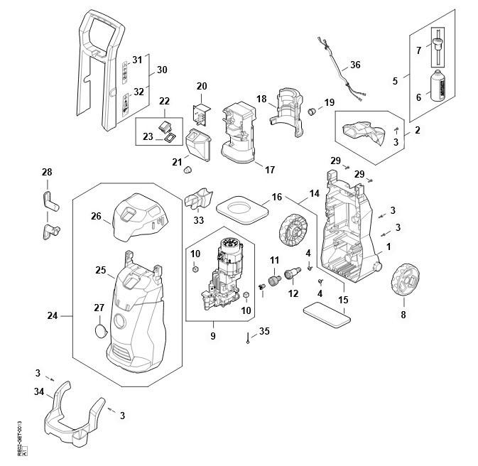 RE 100.0 PLUS CONTROL - Wózek manewrowy, Sterowanie przepływem powietrza, Pokrywa, Obudowa przełączn