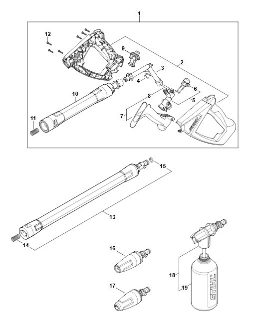 RE 120 PLUS -Pistolet, lanca natryskowa