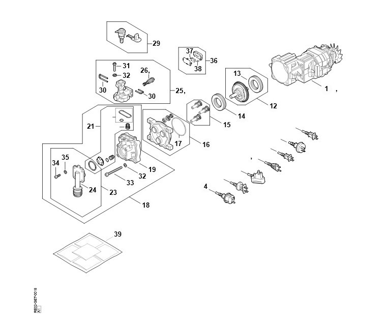 RE 80.0 X - Silnik elektryczny, Przewód przyłącza zasilania, Blok zaworowy, Pompa