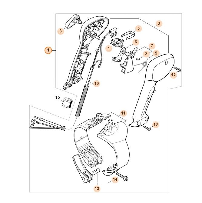 Rękojeść manipulacyjna z cięgnem gazu Stihl do dmuchaw BR 350 / BR 430 / BR 450 – OEM 4244 790 4901
