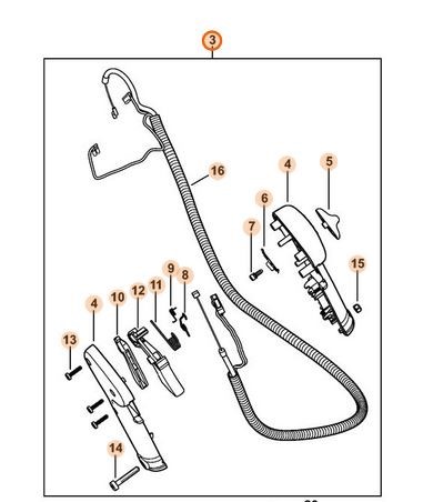 - Typ części: Oryginalna rękojeść manipulacyjna (uchwyt) z linką gazu Stihl