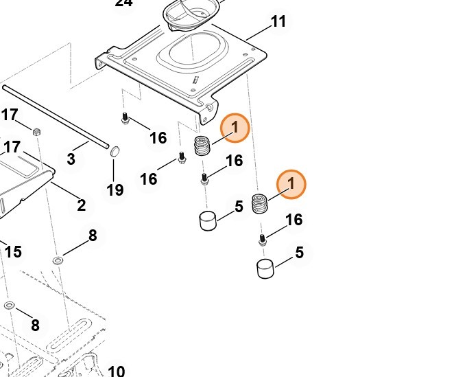 Sprężyna ta (znana także jako sprężyna dociskowa, tension spring lub mower spring) jest stosowana w układach napędowych lub agregatach tnących w popularnych modelach traktorków ogrodowych Stihl i Viking: