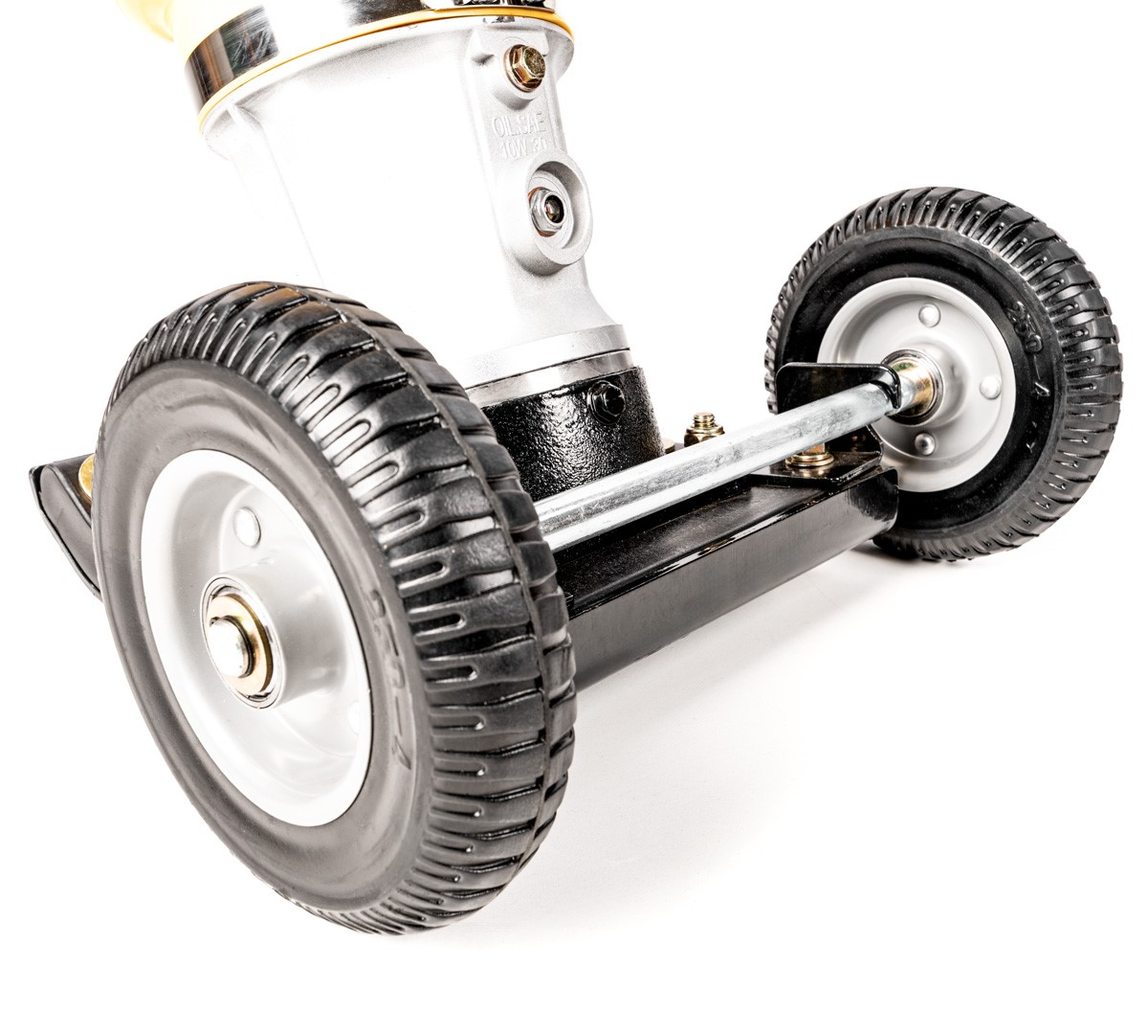Projektanci modelu ST02 postawili na ergonomię i mobilność. Maszyna o wadze 78 kg została wyposażona w składane koła transportowe oraz dedykowany uchwyt, co umożliwia łatwy transport na placu budowy przez jedną osobę. Solidna obudowa chroni silnik przed przypadkowymi uderzeniami, a optymalnie dobrany rozmiar stopy (34,5 x 28,5 cm) zapewnia idealny balans między stabilnością a możliwością pracy w najciaśniejszych szczelinach.