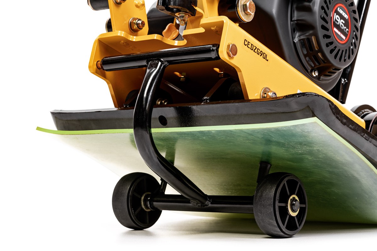 Model ZG90L został zoptymalizowany pod kątem równowagi między wydajnością a manewrowością. Płyta robocza o wymiarach 58x50 cm pozwala na szybkie pokrycie dużych powierzchni, zachowując jednocześnie możliwość pracy wzdłuż ogrodzeń i krawężników. Konstrukcja maszyny oparta jest na solidnej ramie ochronnej, która zabezpiecza silnik przed uderzeniami mechanicznymi, a składany uchwyt i dołączone koła transportowe sprawiają, że transport 90-kilogramowego urządzenia pomiędzy inwestycjami jest wyjątkowo prosty.
