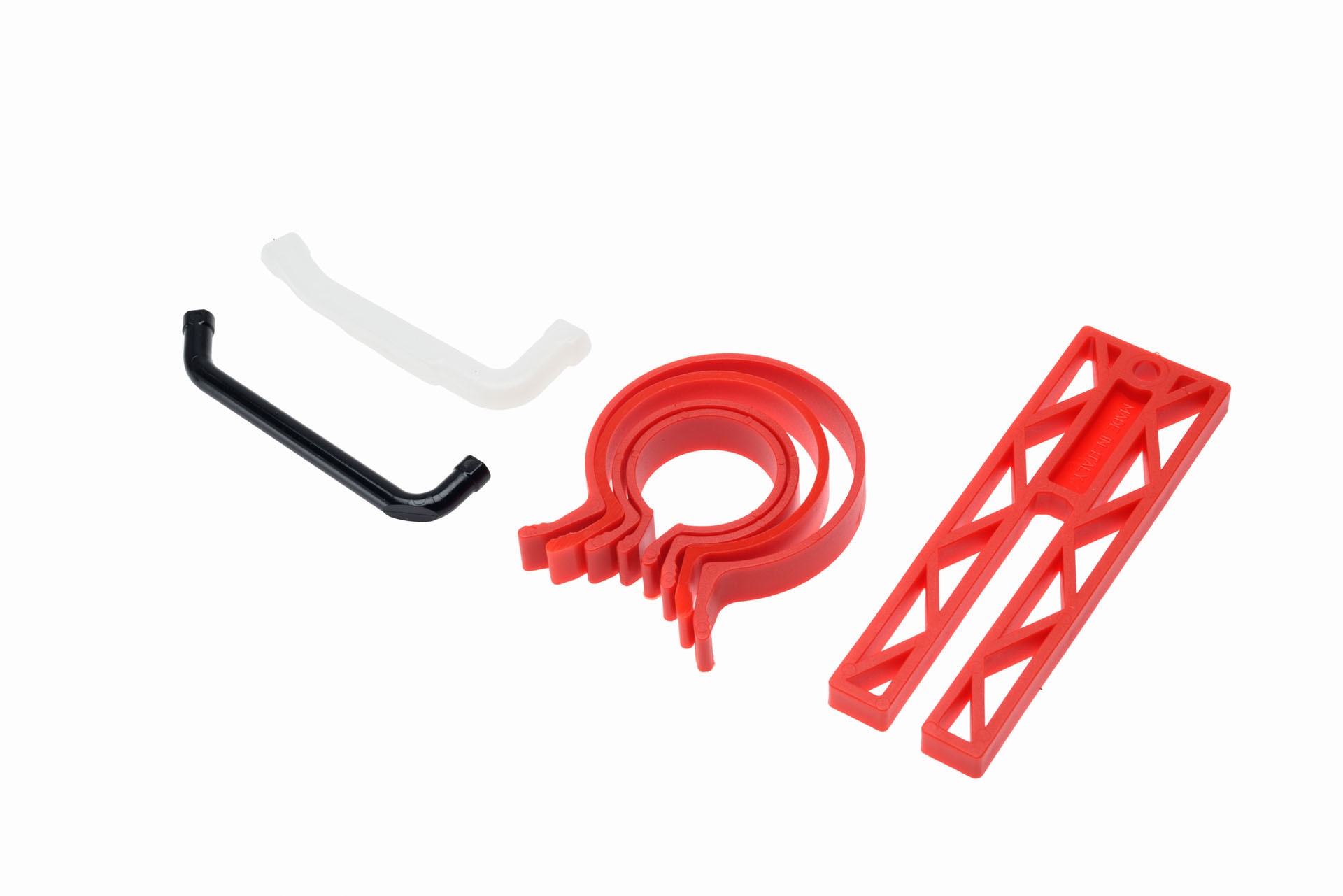 - 4x Obejmy do ściskania pierścieni: Obejmy o różnych średnicach, pozwalające na dopasowanie do większości popularnych tłoków (od małych pilarek po większe maszyny).